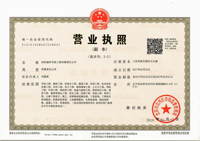 沈陽盛祥市政工程有限責(zé)任公司 地址:地址:沈陽市沈河區(qū)南順城路63-2號(4-3-3)